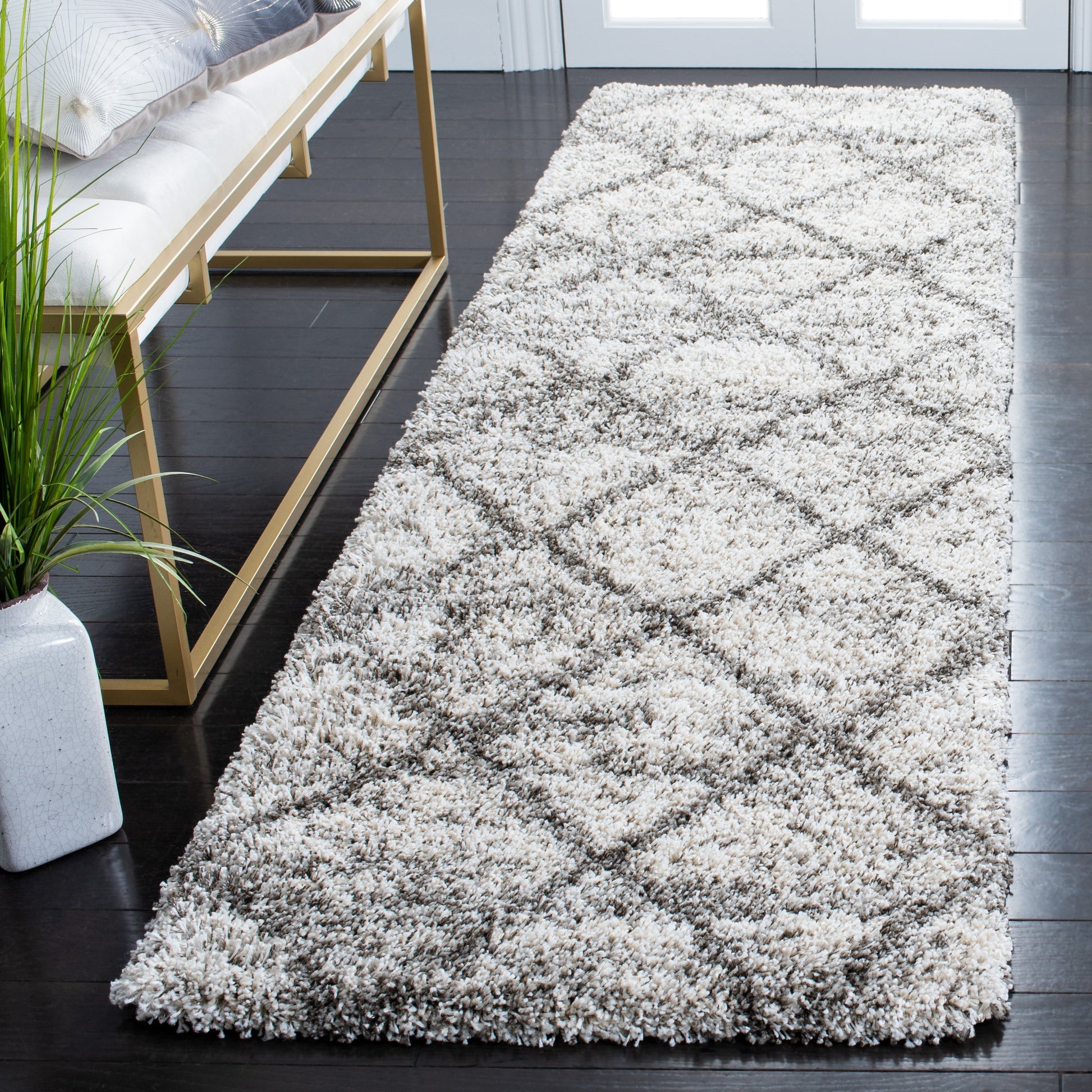 Plongez vos orteils dans le confort luxueux du tapis SAFAVIEH Hudson Shag Estella Diamond Trellis. Avec son épaisseur moelleuse de 5 cm, ce tapis est non seulement doux au toucher, mais il apporte également une touche tendance à n'importe quelle pièce de votre maison. Des motifs modernes aux inspirations marocaines, ce tapis s'harmonise parfaitement avec les styles de décoration contemporain, champêtre, rustique ou transitionnel. Les fibres synthétiques faciles d'entretien sont durables et ne peluchent pas, ce qui en fait un choix idéal pour les zones de passage fréquent.